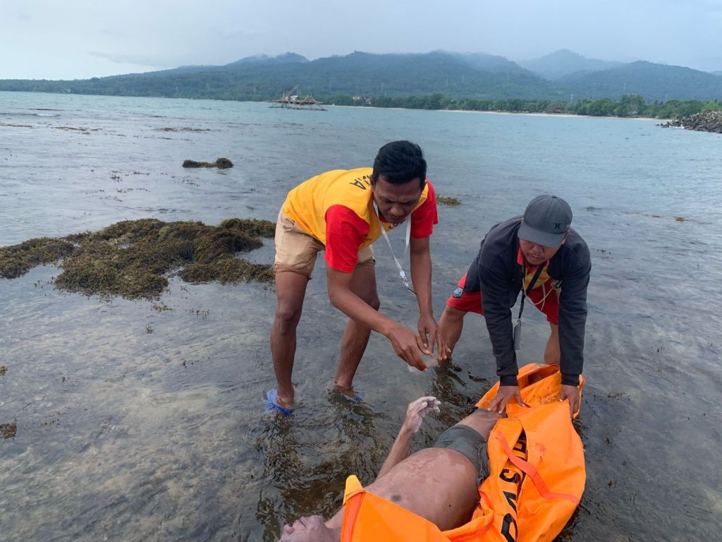 kini Korban Meninggal Dunia akibat terseret Ombak langsung di bawa ke Puskesmas Carita.